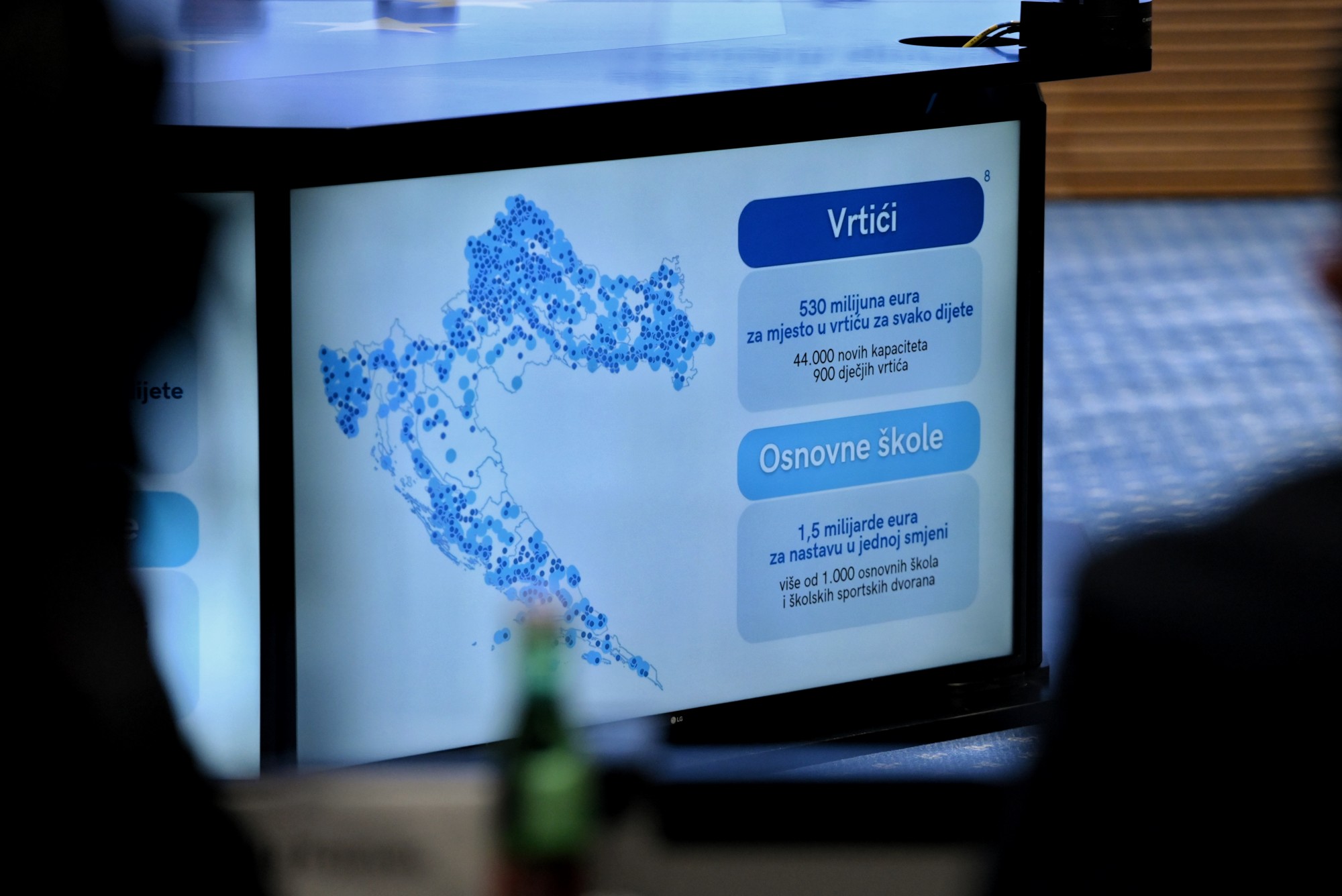 Kako je istaknuo premijer, novi kapaciteti i novi uvjeti stvaraju moderno školstvo, moderni predškolski odgoj i kvalitetnije uvjete za djecu, roditelje i profesore. Ulaže se u 1000 školskih objekata i 900 vrtića, obnavlja se još 184 vrtića i škola, a s 530 milijuna eura osigurano je 44.000 novih kapaciteta u vrtićima.
