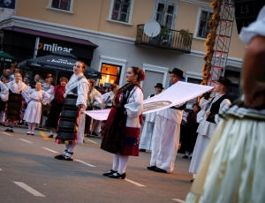 Svečanim mimohodom i prikazom berbe grožđa započeo je jubilarni 55. festival Zlatne žice Slavonije. Nakon što su se domaća i gostujuća folklorna društva ulicama Požege pokazala u punom sjaju, uslijedio je i nastup na pozornici, a veliko slavonsko kolo i podizanje festivalske zastave označili su službeno otvorenje festivala. Festival je otvorio zastupnik u Hrvatskom saboru i gradonačelnik Grada Požege Željko Glavić.
