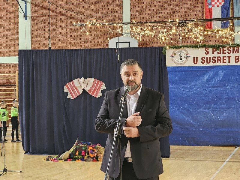 - Uvijek je lijepo biti u ovo doba godine u Brestovcu, na ovoj već tradicionalnoj manifestaciji „Pjesmom u susret Božiću” i vidjeti kako se ta manifestacija iz godine u godinu razvija zahvaljujući ovim dragim ljudima, članovima KUD-a Berda i njihovom nesebičnom čuvanju tradicije, božićnih običaja i božićne pjesme. Na tome im od srca hvala. Večeras smo se ovdje okupili kako bi pjesmom, plesom i u zajedništvu dočekali ono najljepše godišnje doba koje je pred nama, a to je božićno vrijeme. Božićno vrijeme i Božić nisu samo darovi, nisu samo ukrasi. Božićno vrijeme je u ljudima oko nas. U svim tim ljudima oko nas kao što su naša obitelj, naši susjedi, naši prijatelji s kojima dijelimo dobro i radost – rekao je Radošić.